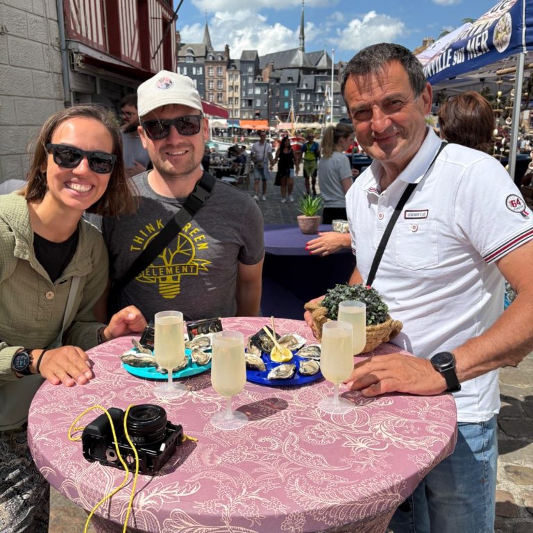 Ein Tagesausflug nach Honfleur begeisterte uns mit idyllischen Gassen, bunten Marktständen und fantastischen Austern. Ein Spaziergang durch den grünen Park, die Schleuse und Fish and Chips am Ende machten den Tag perfekt.