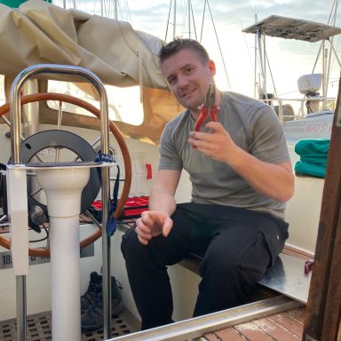 Im Sommer 2025 starteten wir unsere große Segelreise in der Marina Muiderzand bei Almere. Dort wurde unsere Ventura, eine Taling 33, mehrere Monate lang vorbereitet und ausgerüstet. Die zahlreichen Arbeiten – vom Rigg über die Elektronik bis hin zur Montage der Windsteueranlage – waren sehr anspruchsvoll, halfen uns aber auch, das Boot bis ins Detail kennenzulernen. Dabei bekamen wir Unterstützung von Familie, Freunden und sogar vom Voreigner, wofür wir sehr dankbar sind.